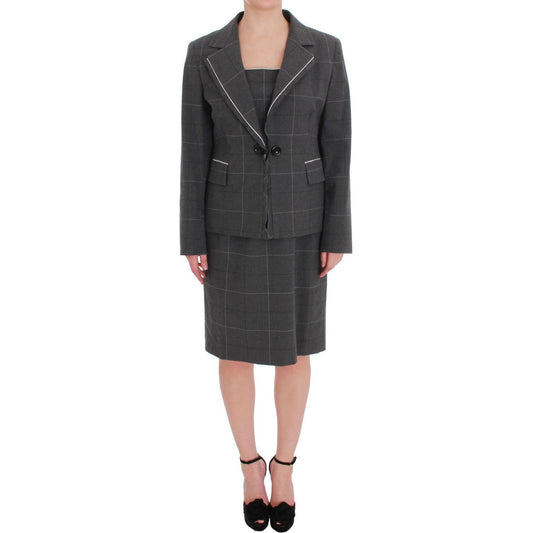 优雅格纹棉混纺西装套装
