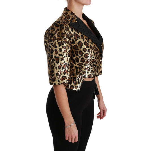 金色豹纹短袖西装外套