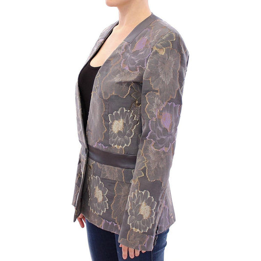 优雅的丝绸混纺黑色西装外套,背面饰有围巾